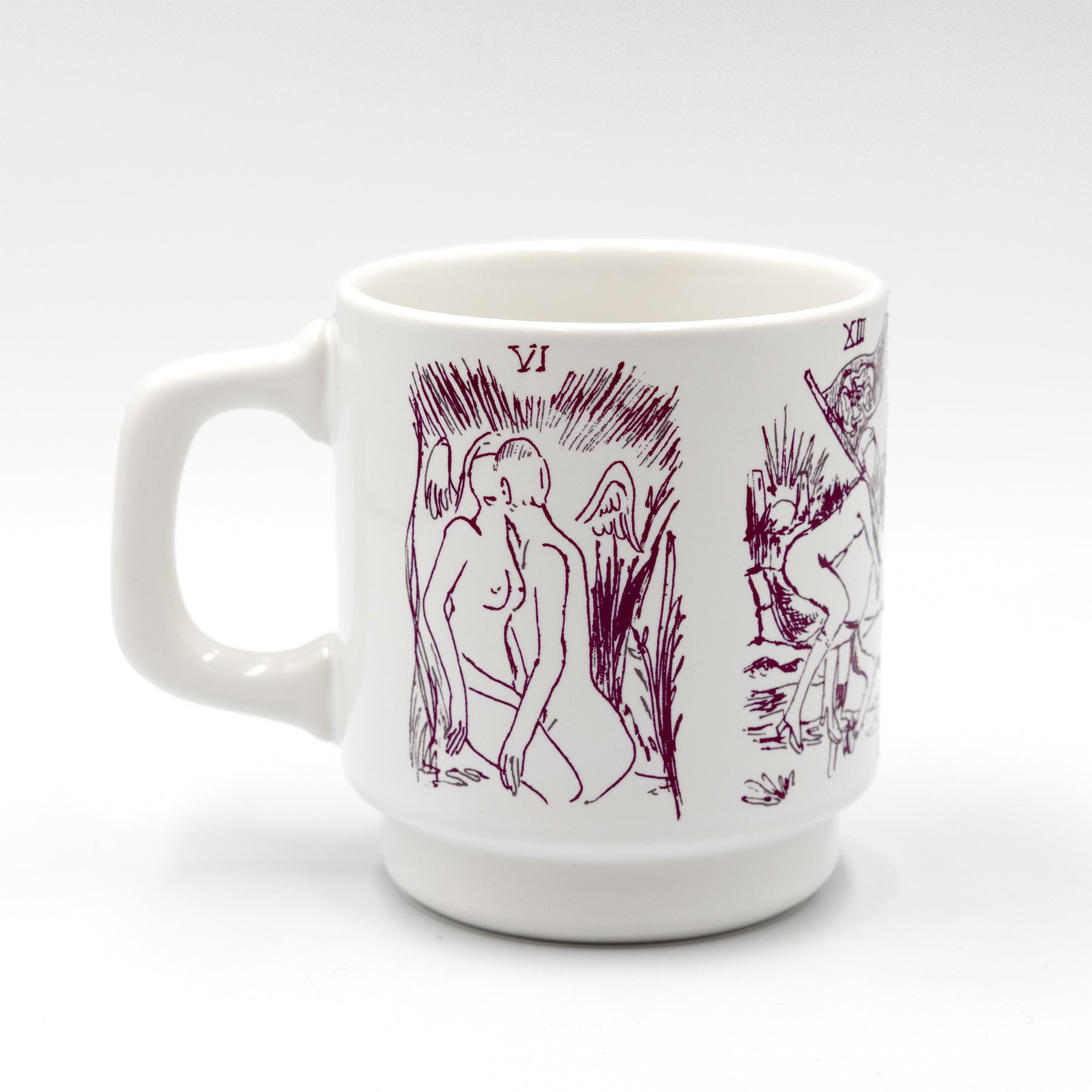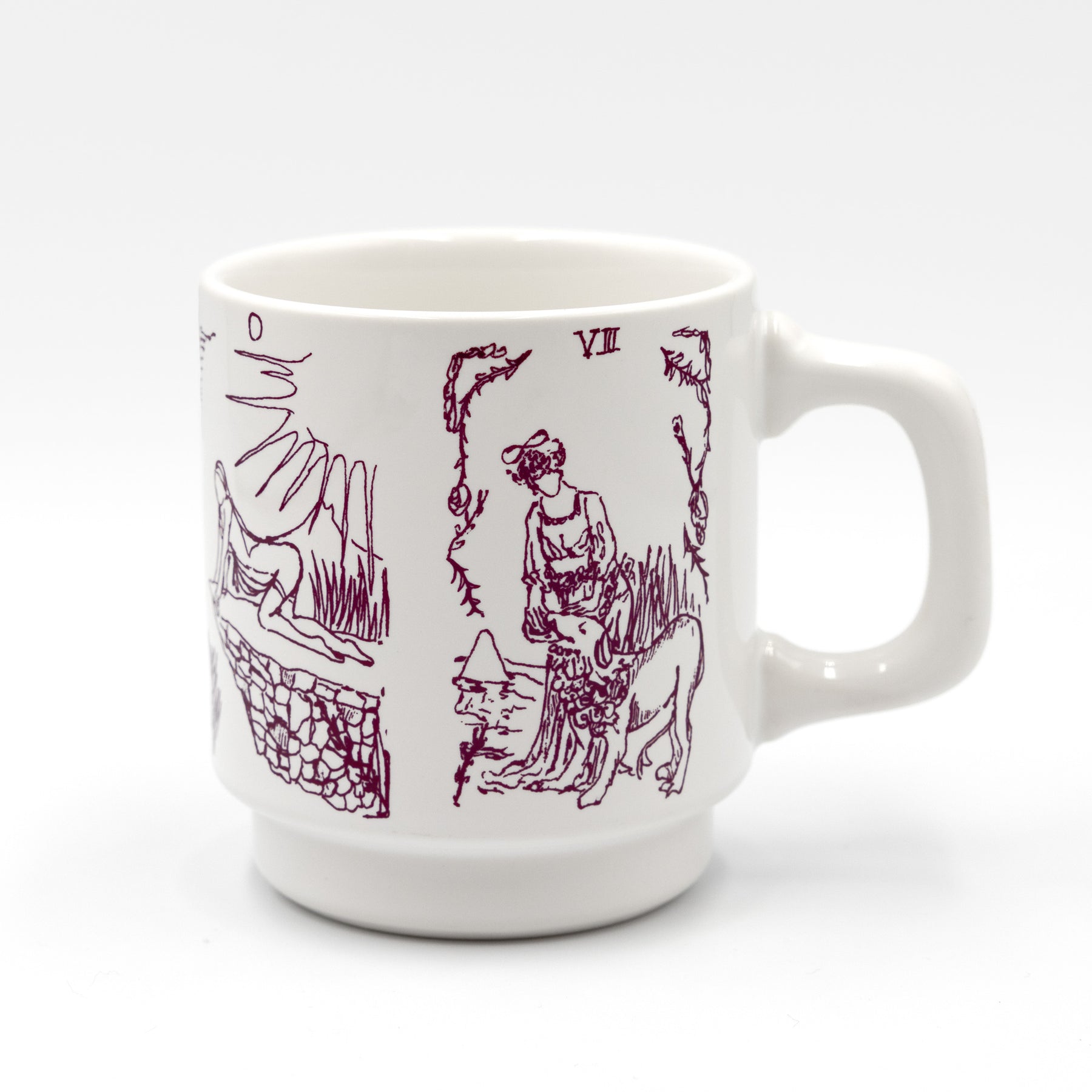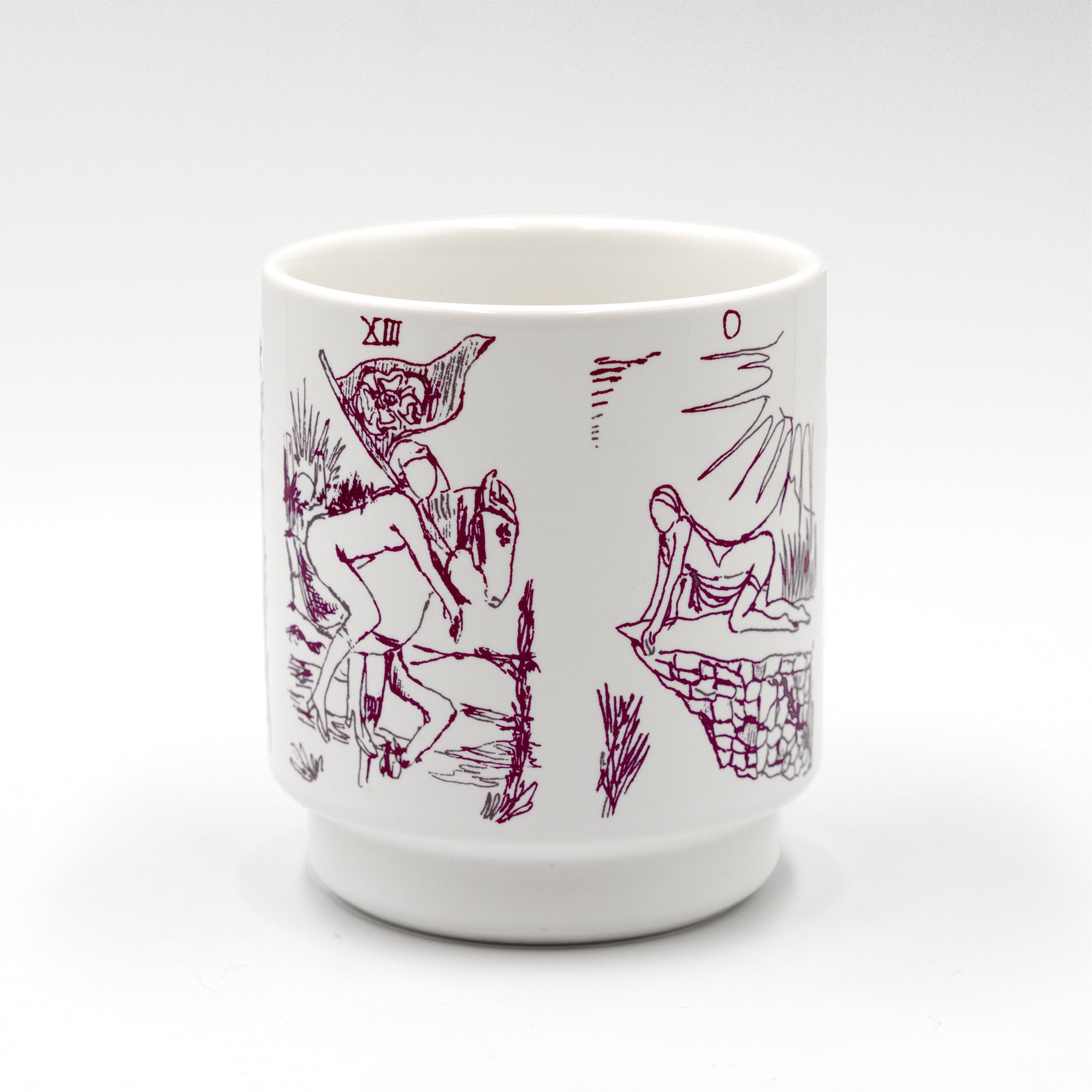 二人展「Lux」に併せて製作した後藤夢乃のマグカップ。タロットカードのドローイングをプリント。ルーフミュージアム限定アイテムです。