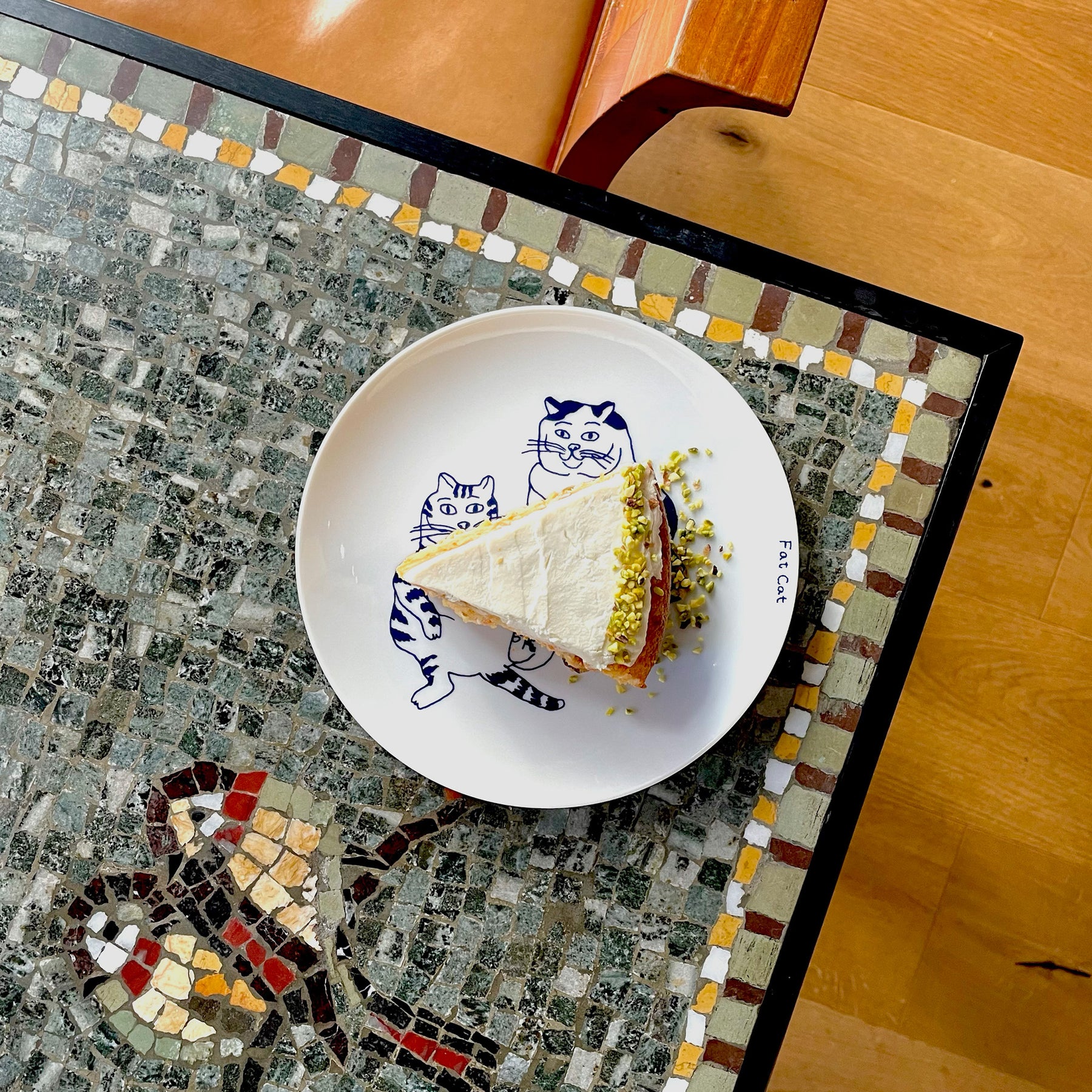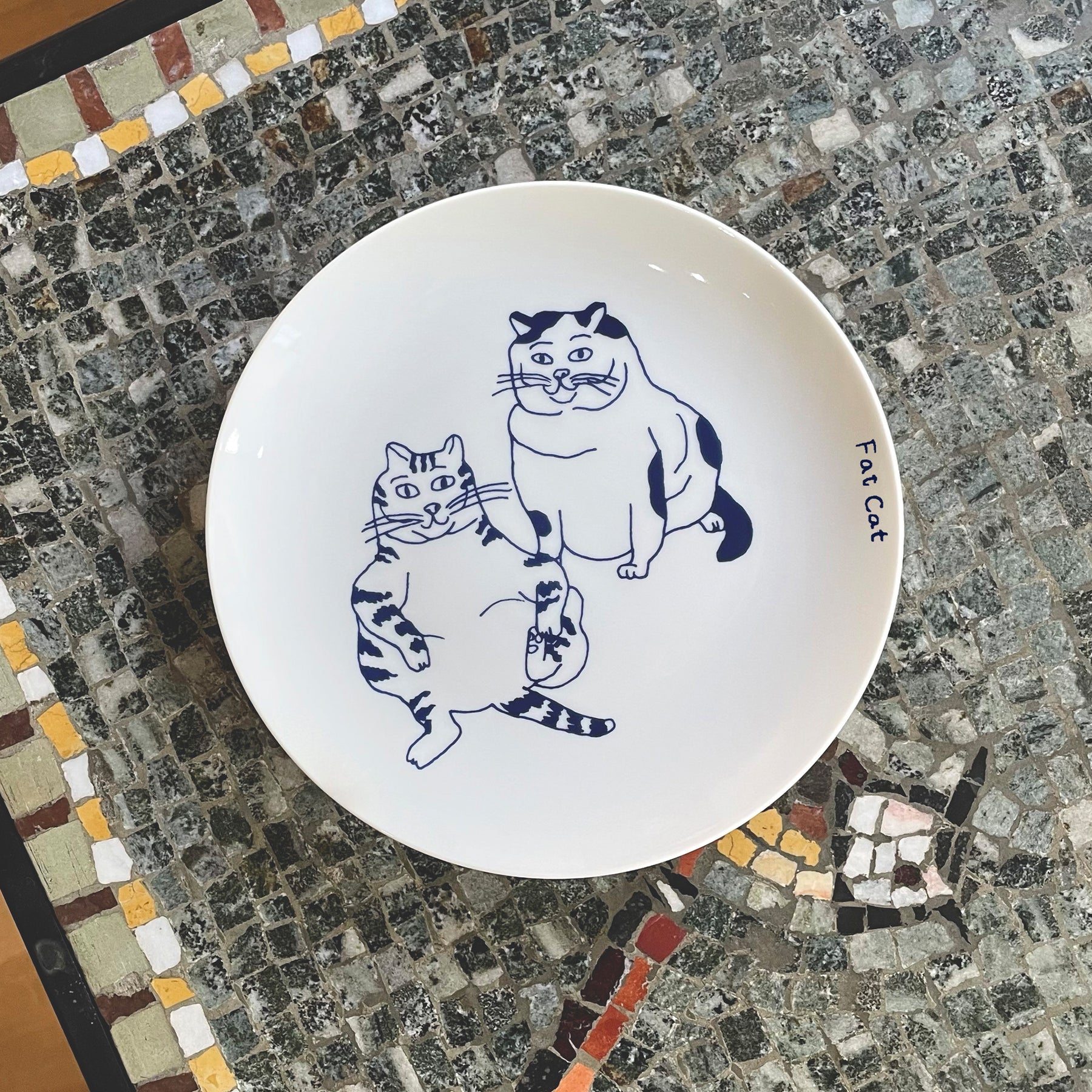 こちらを見つめる太った猫たちが描かれています。イラストは本アイテムのための描き下ろし。