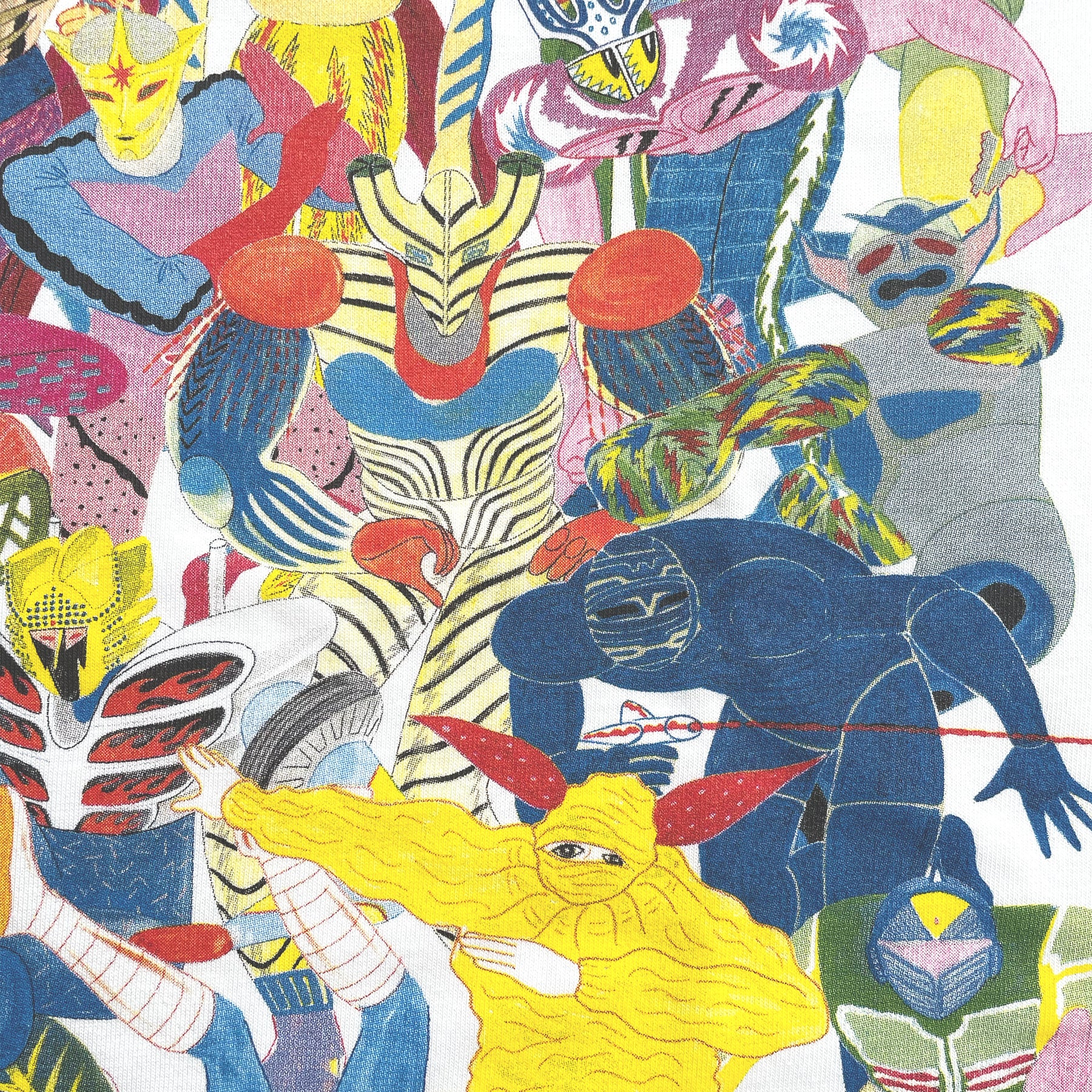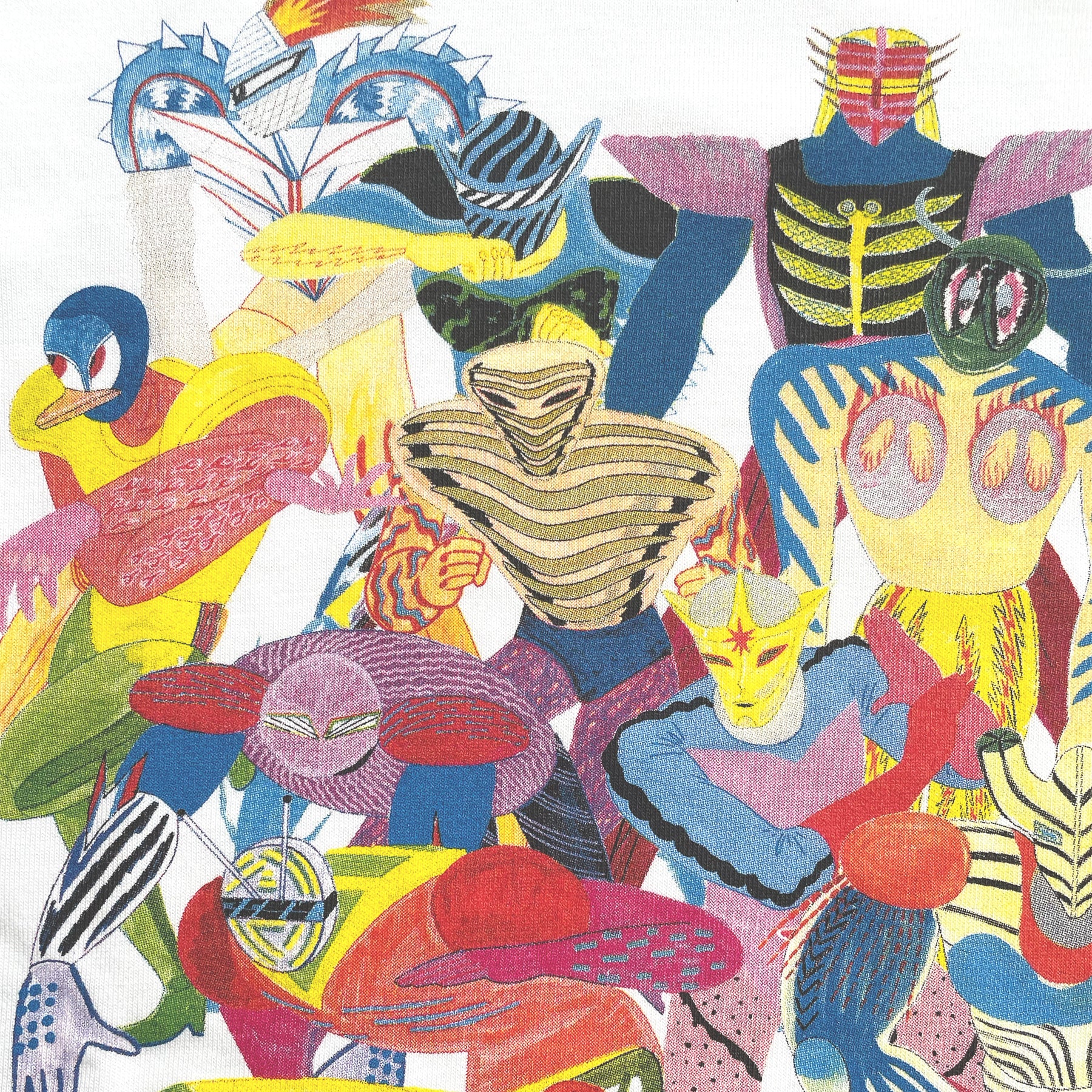 牛木匡憲 個展「Easy Telepathy II」に併せて製作した長袖Tシャツ。一体ずつデザインして描かれたFIGHTERシリーズを集めたデザイン。