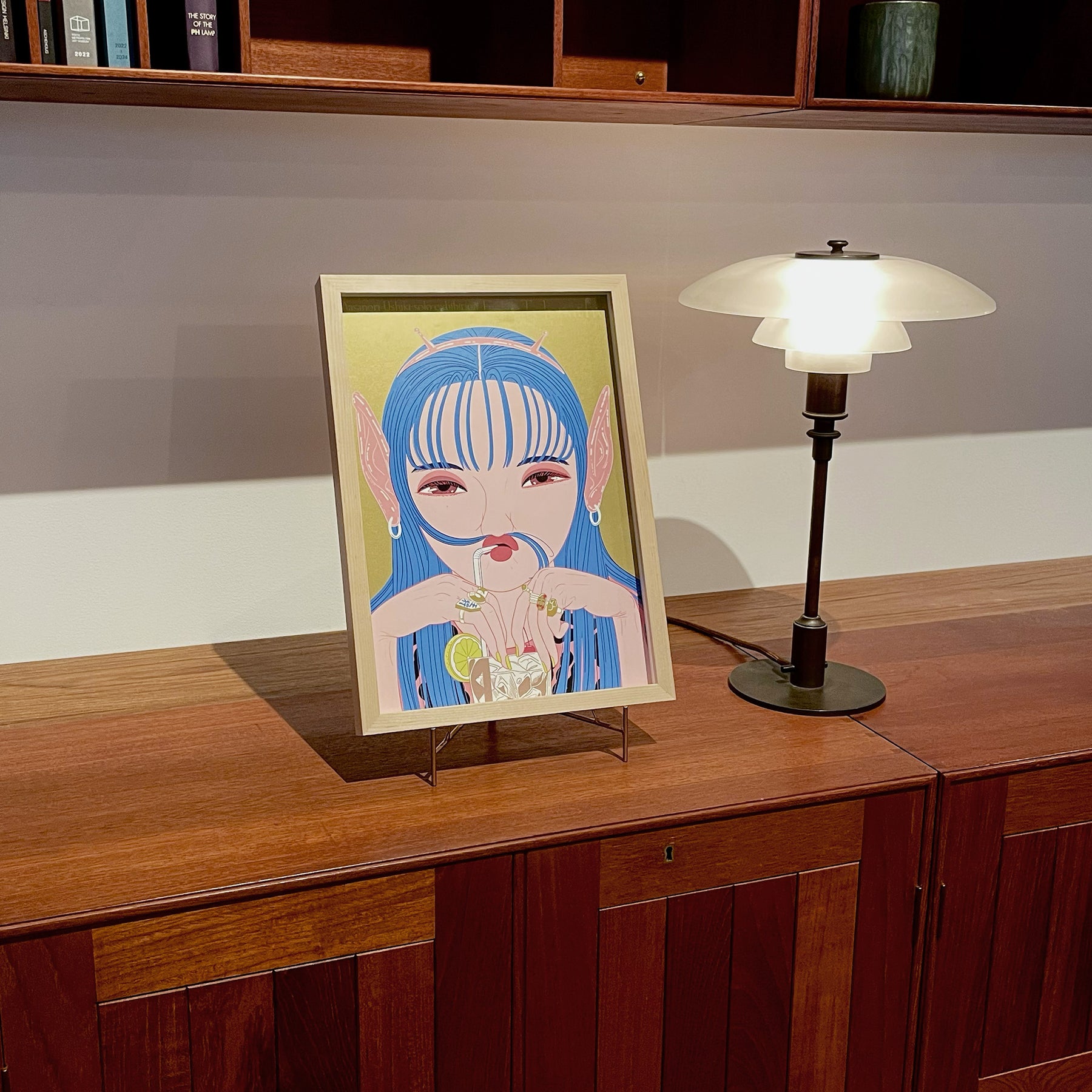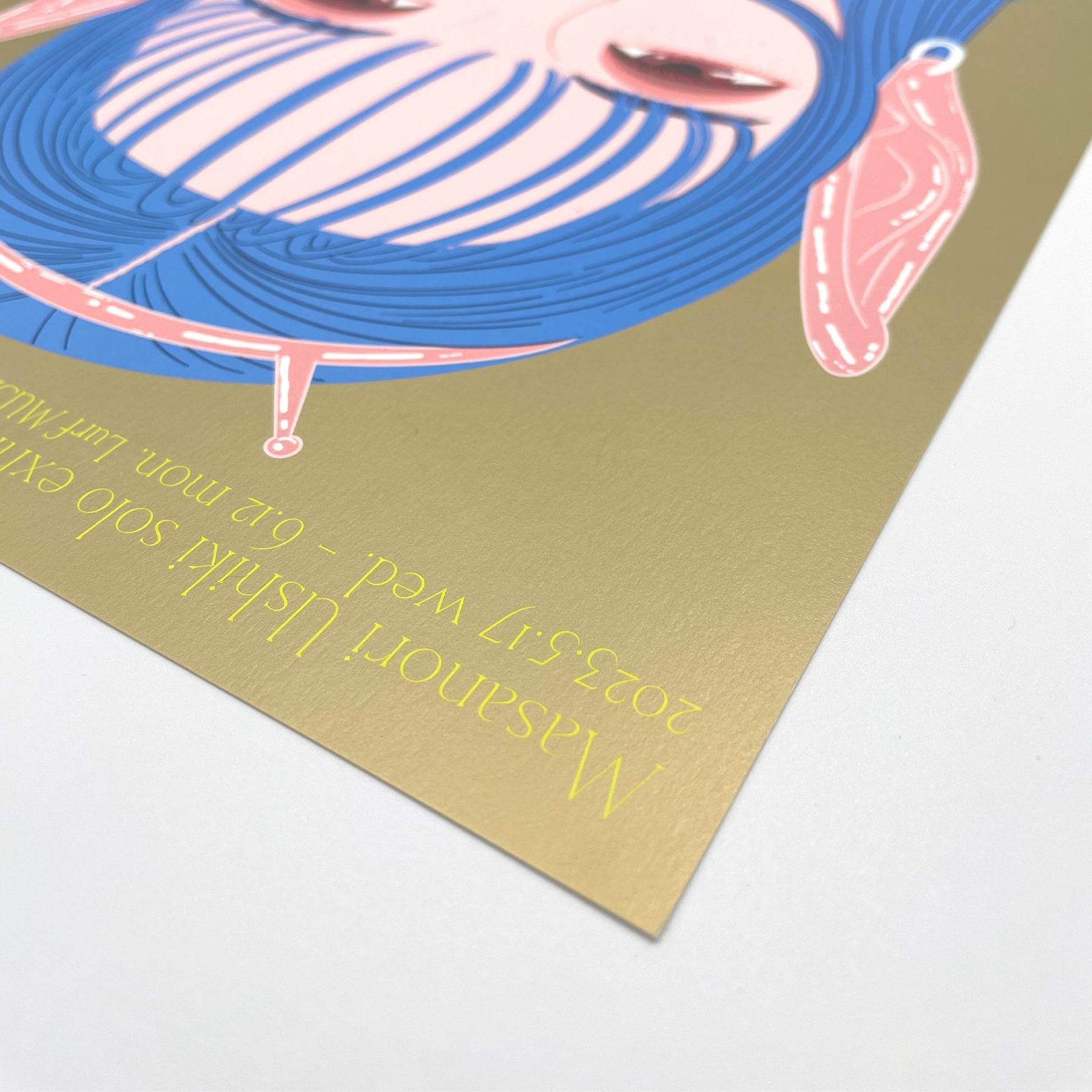 牛木匡憲 個展「Easy Telepathy」に併せて製作したB4サイズのポスター。展示のメインビジュアルとなる描き下ろしアートを使用した、ルーフミュージアムのみでしか手に入らないアイテム。背景の金色と髪の青を特色で表現した、こだわりのポスターです。